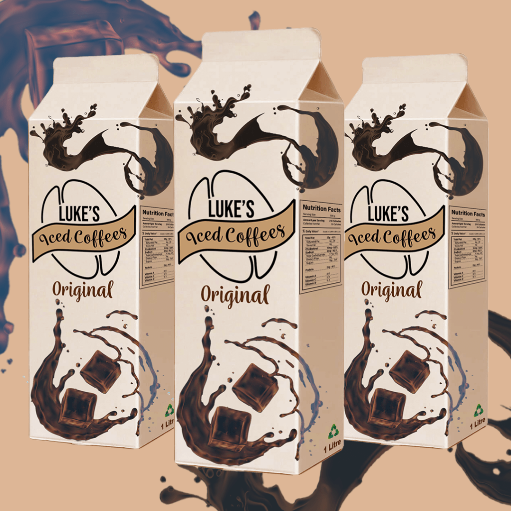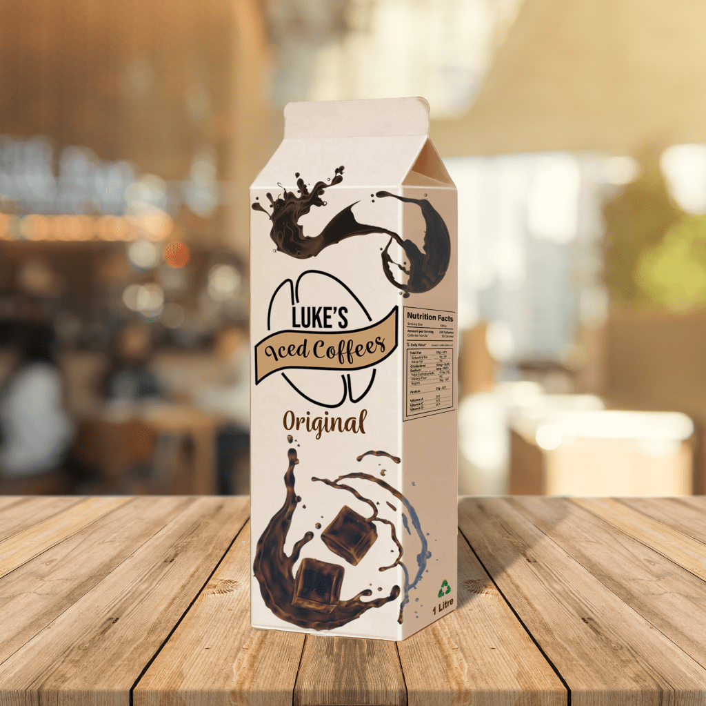 Luke’s Iced Coffees wanted the logo to be easily recognisable and wanted it to be printable on cartons which as you can see below this looks great in the mockup.