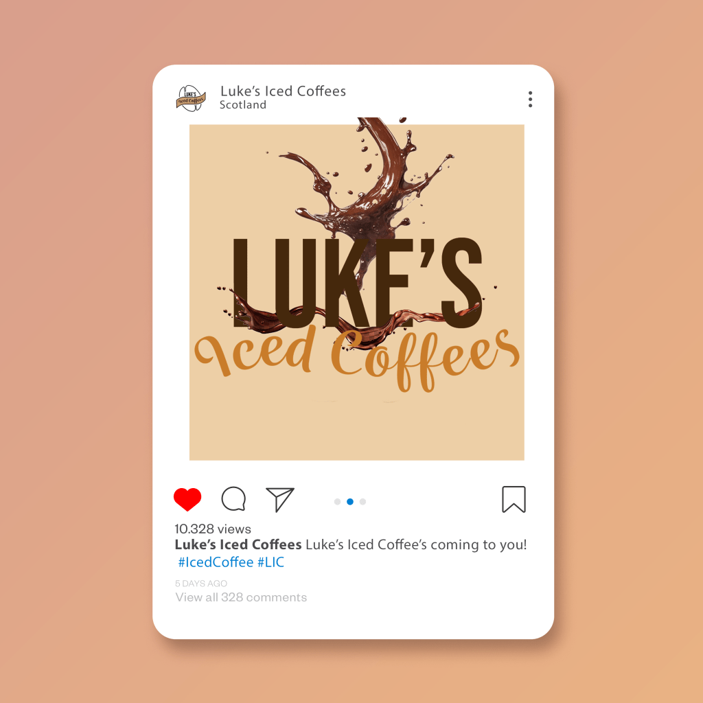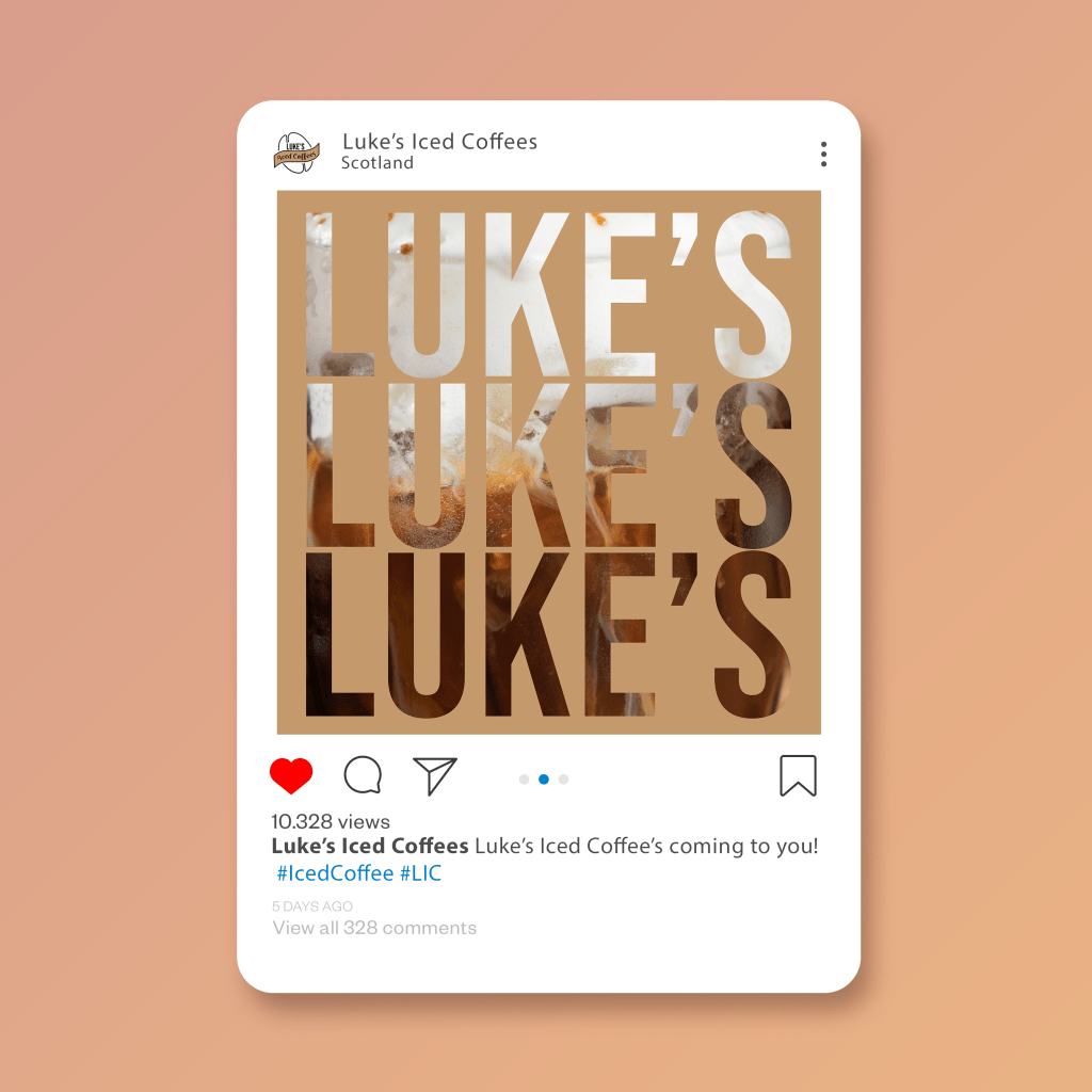 Below shows an example of an instagram advertisement for Luke’s Iced Coffees, this is an example of the sort of graphics that would be promoting the brand and will bring the brand to life.