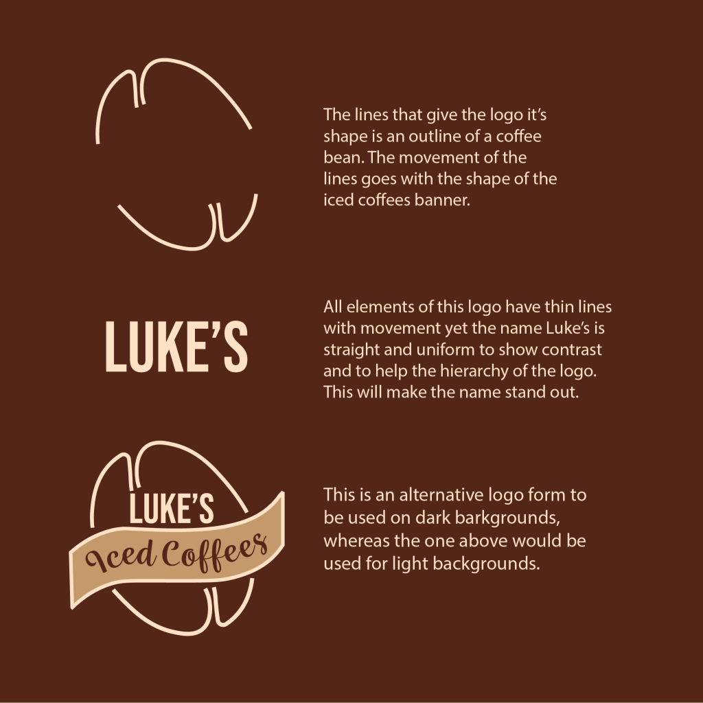 This is a logo I created for a brief that was on briefup.co, the brief featured an iced coffee company called ‘Luke’s Iced Coffees’. They had nailed a recipe for a new iced coffee and wanted an edgy and cool design to go with it.